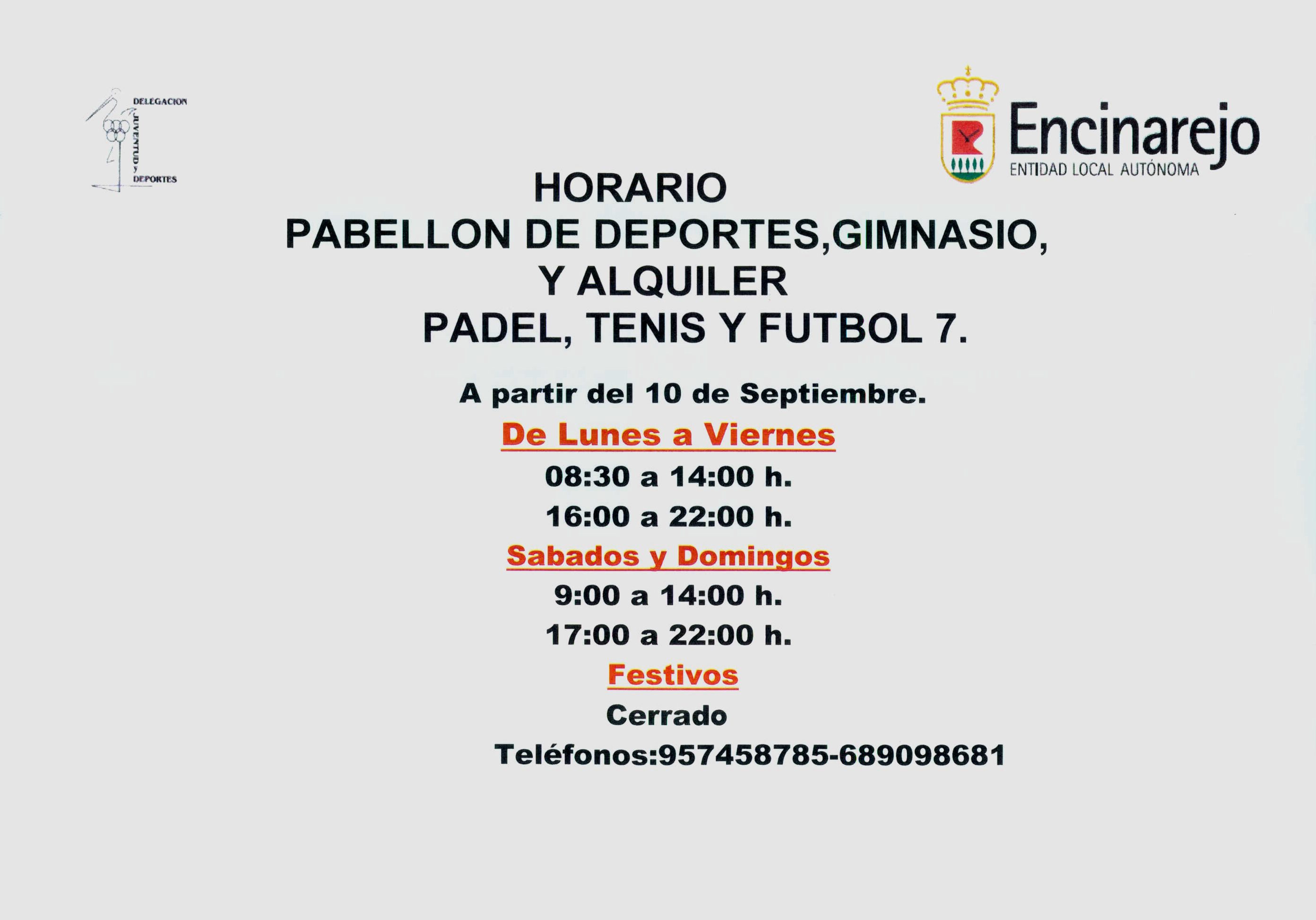 Horario Instalaciones Deportivas Temporada 2019-2020